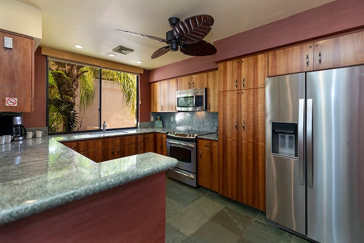 Სრული სამზარეულო აღჭურვილია ყველაფრით, რაც სახლში მომზადებული კერძების მოსამზადებლად გჭირდებათ - იქნება ეს წვეთოვანი ყავის აპარატი, ბლენდერი, ჭურჭელი თუ ჭურჭელი. Ფართო სასადილო სივრცე შიგნით შესანიშნავია შეკრებისთვის, ხოლო ლანაი გთავაზობთ მიმზიდველ სივრცეს ღია ცის ქვეშ კვებისთვის ან მზის ჩასვლის ჩვეულებრივი სასმელებისთვის.