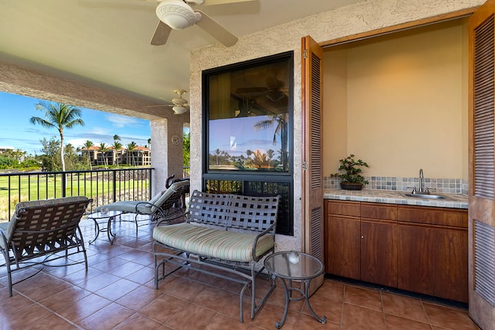 Ექსპანსიური ლანაი კონდომინიუმის გარშემოა, რაც უპრობლემო კავშირს ქმნის შიდა საცხოვრებელსა და აყვავებულ, ლანდშაფტურ გარემოს შორის. Ეს შესანიშნავი ადგილია მშვიდი დილაობით, ალ-ფრესკოში სასადილოდ ან, უბრალოდ, კუნძულზე ატმოსფეროთი დასატკბობად. Სტუმრებს, ასევე, აქვთ წვდომა გრილ-ბარბექიუზე, რომელიც იდეალურია პლაჟისპირა დღის შემდეგ შემწვარი ვახშმისთვის.