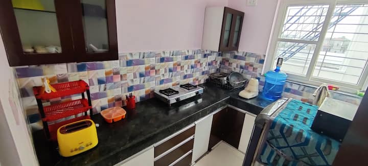 2BHK Escape: AC, OTT, სამზარეულო, და ტერასა Bliss