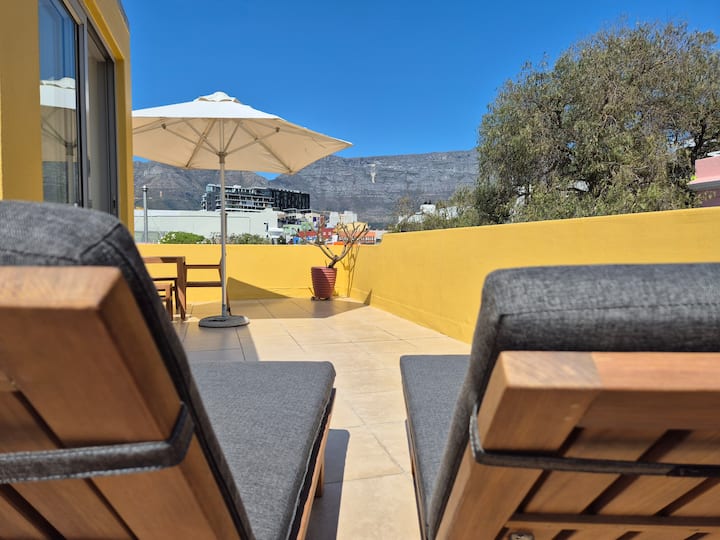 Სახურავის ტერასები საძინებელი შესანიშნავი ხედებით ქალაქსა და მაგიდის მთაზე