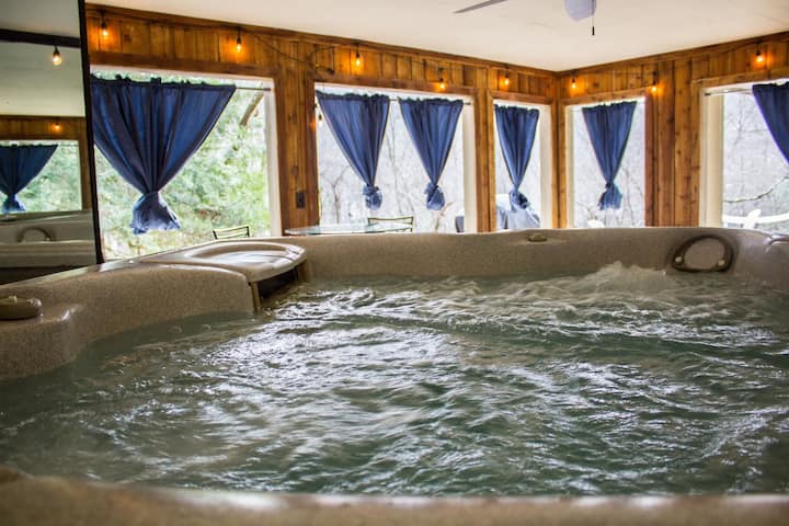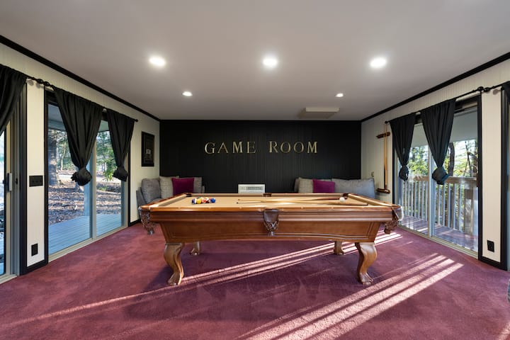 Შინაური ცხოველებისთვის შესაფერისი ხის სახლი: ჰიდრომასაჟიანი აუზი, სათამაშო ოთახი, სახანძრო ორმოები