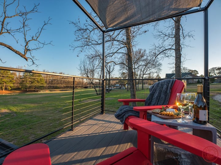 Კარგი კვამლი: ახალი გლემპინგი კონროს ტბის გვერდით! Რომანტიკული თანამედროვე Tiny Home w/ძვირადღირებული საყოფაცხოვრებო პირობები, Rooftop Deck, სავარძლების აუზი, Kamado BBQ მწეველი, Stocked Ponds! Ითამაშეთ საყვარელი თხები. The Woodlands-დან მხოლოდ 30 წთ & 1 სთ ჰიუსტონიდან!