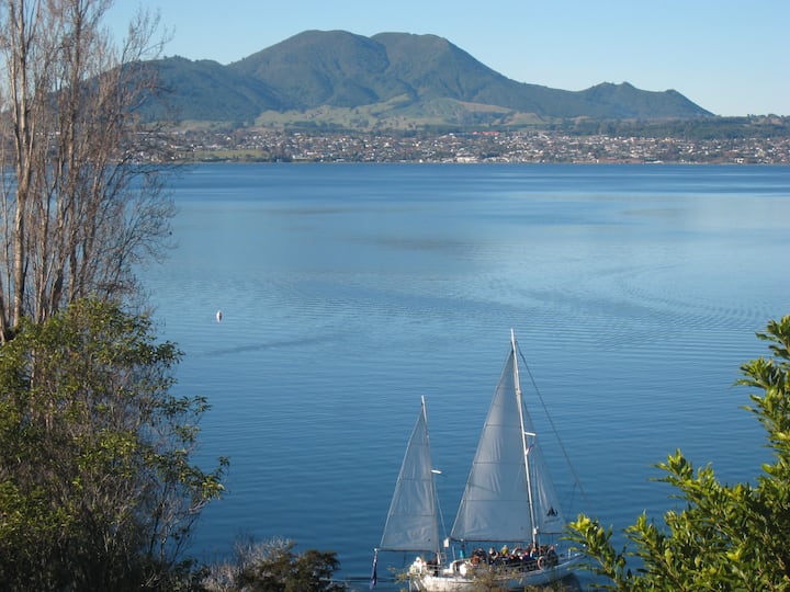 - დასასვენებლად დასაქირავებელი ტბისპირა საცხოვრებლები: Taupō