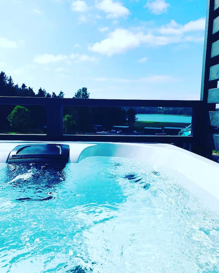 Ზღვის ხედი, ჩვენი გარე ჰიდრომასაჟიანი აუზი (ჯაკუზი ) - თანამედროვე ვილა