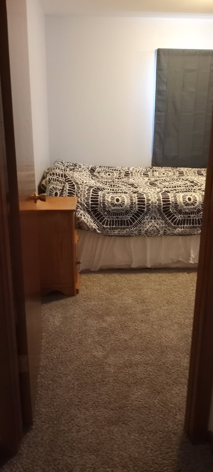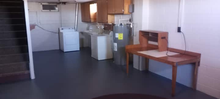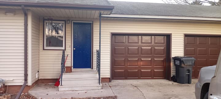 Ახალი შეღებილი, ხალიჩით მოპირკეთებული 2-საძინებლიანი სახლი ავტოფარეხით
