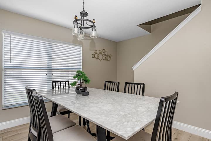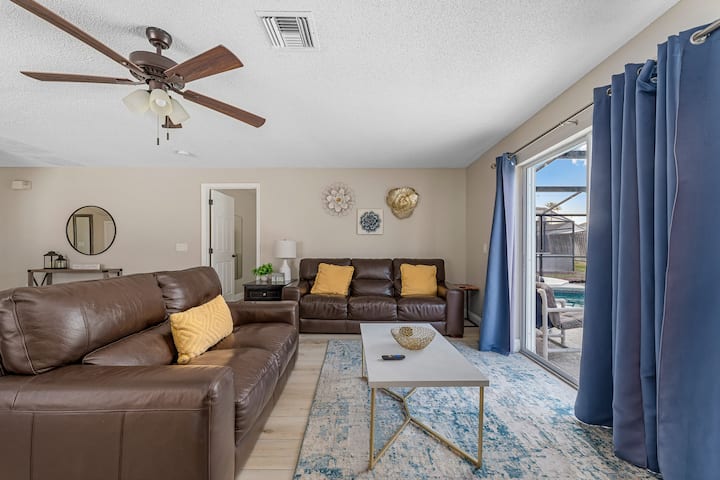 ნაზი დილის სინათლე ფარდებს შორის იკვეთება, თქვენ კი მშვიდ აივანზე გაწელილები ხართ, სრულად შემოღობილი ეზოდან კი ახალი ბალახის სურნელი მოდის. Disney World‑ში ან ახლომდებარე ტბებზე გატარებული დღის შემდეგ გაიგონებთ აუზის ნაზ ჟღერილს, რომელიც გათბობილია და მოდუნებისკენ გიხმობს. სახლი ერთდროულად არის როგორც ფართო, ისე მყუდრო — მშვიდი თავშესაფარი, რომელიც ოჯახის წევრების სიცილსაც იკრებს. კისიმიში საღამო იწყება, მისაღებ ოთახში ტელევიზორის რბილი შუქი ანათებს — პარკში გატარებული საინტერესო დღის შემდეგ ფილმის საყურებლად ყველაფერი მზად არის.