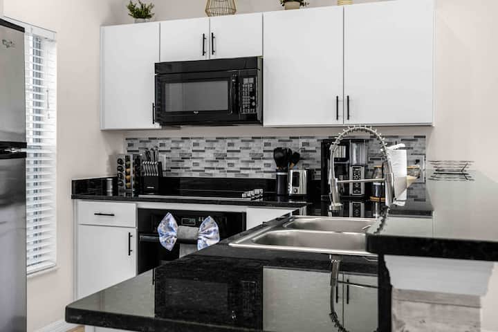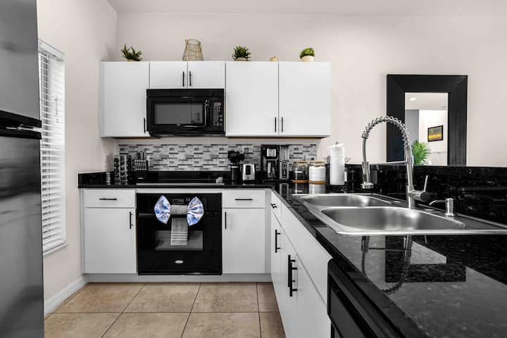 10 წუთი Disney ‑ მდე | ჰიდრომასაჟიანი აუზი | Deluxe King Suite