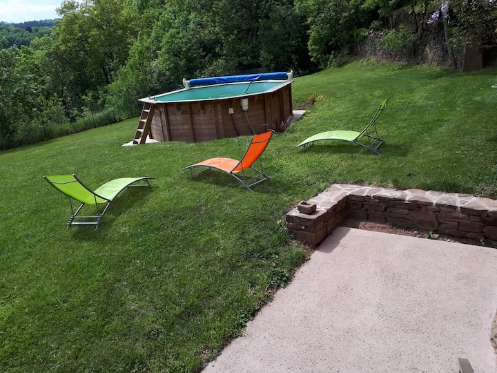 Ფართო კოტეჯი ქალაქგარეთ, მიწისზედა აუზით