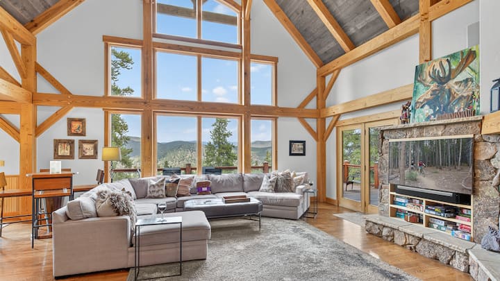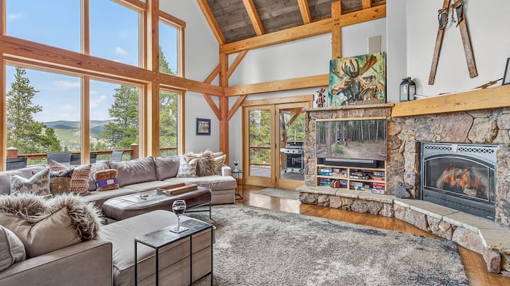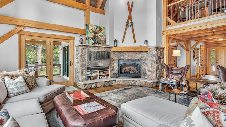 Ხე-ტყის სახლი მთის ხედებით + ჰიდრომასაჟიანი აუზი + შინაური ცხოველებისთვის შესაფერისი + თხილამურებით სრიალთან/გოლფთან ახლოს - მოსე ტრეკების სახლი
