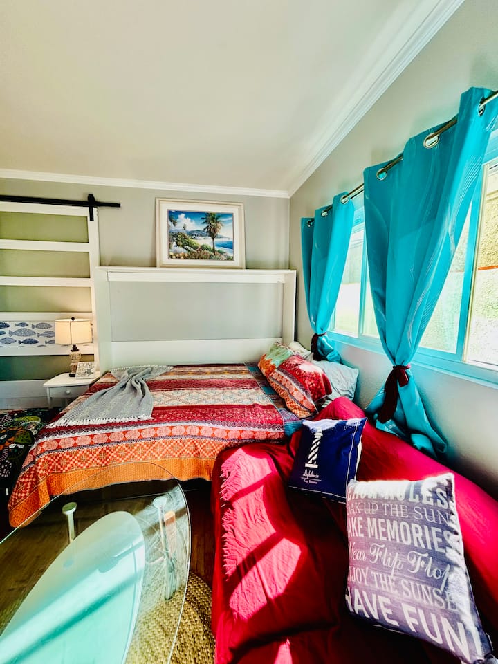 სერფინგის სახლი — ოკეანესთან მდებარე, სინათლით სავსე ოთახი