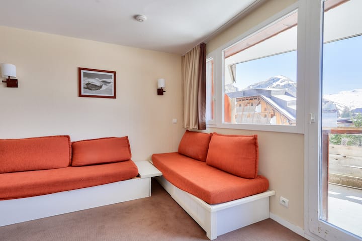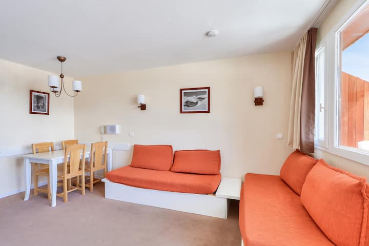 ფართობი 25 მ2. ადგილმდებარეობა: სართული: სასტუმრო ფალეზის შენობის მე-3 სართული; პლაჟზე ან ფერდობებზე წვდომა: პირდაპირი წვდომა ასაფრენ ბილიკებზე (ტრასის ფუტები); ქალაქის ან სოფლის ცენტრი: ცენტრი-სოფელი; ზღვამდე მანძილი: 100-დან 500 მეტრამდე; სავაჭრო მანძილი: <100 მეტრამდე; აქტივობების მანძილი: 100 მეტრსა და 500 მეტრს შორის; საცხოვრებელი სახლების რაოდენობა: ვაკე ფუტი;განლაგება: სტანდარტული დივანი: დიახ ადგილები დივანზე: 3 საძინებელი საწოლი: 2 საწოლი: 1 სასადილო მაგიდა: დიახ სკამების (ან ტაბურეტების) რაოდენობა: 4 ყავის მაგიდა: დიახ ბუხარი: არა