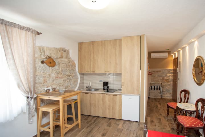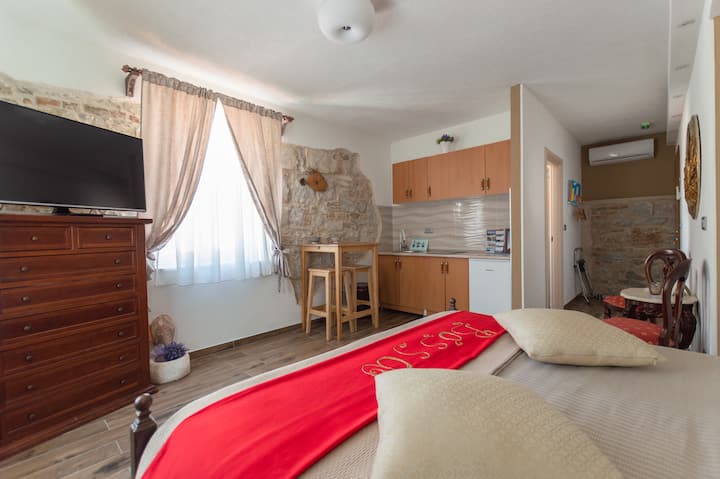 ჩემმა ოჯახმა და მე ეს ბინა 105‑წლოვან ქვის სახლში მოვაწყვეთ, რომ სტუმრებს დასასვენებლად სასიამოვნო გარემო შევთავაზოთ.