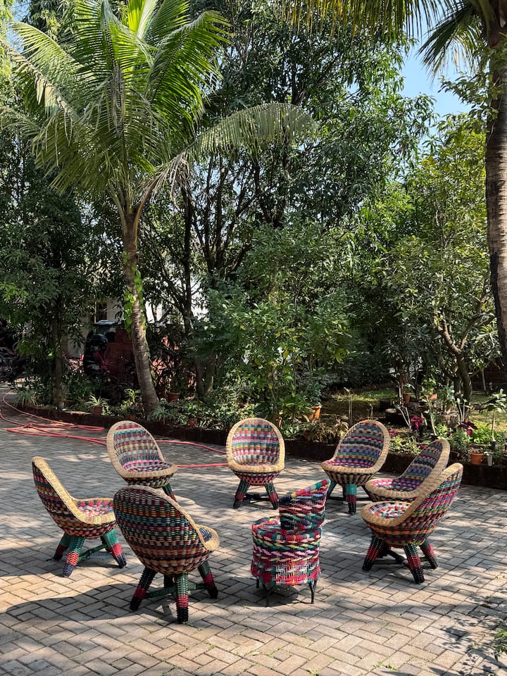 - დასასვენებლად დასაქირავებელი საცხოვრებლები გარე დასაჯდომი ადგილებით: მაჰარაშტრა