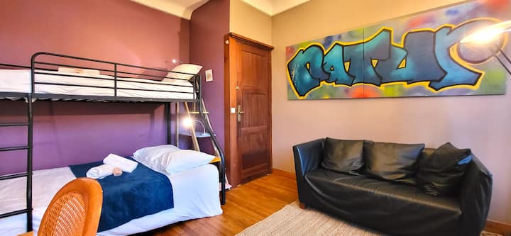 Თავისი ღია მისაღები ოთახით, ორადგილიანი საწოლით, ორსართულიანი საწოლით, თანამედროვე სააბაზანოთი და აღჭურვილი სამზარეულოთი, თქვენ კომფორტულად განთავსდებით ჩვენს ბინაში ატიპური ხიბლით
