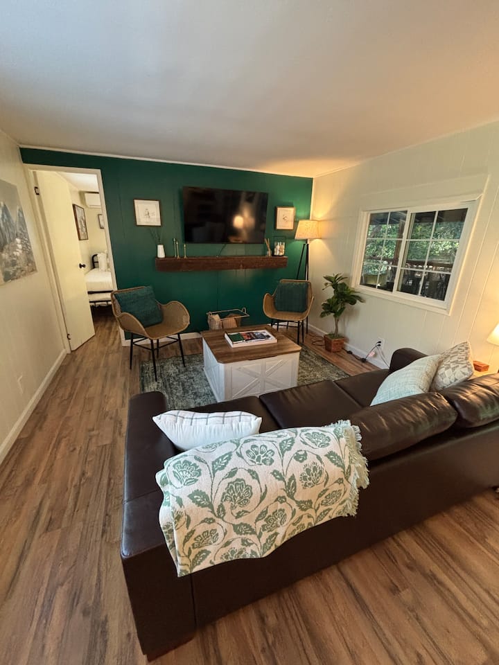 Თანამედროვე ხის სახლი მთის სიმშვიდეს ხვდება სეკვოიის ეროვნული პარკის შესასვლელიდან სულ რაღაც 1 საათის სავალზე. Ისარგებლეთ მთელი წლის განმავლობაში, პირადი სივრცით - არ არის საზიარო წვდომა და ხალხმრავლობა. Დაკიდეთ მდინარისპირა ჰამაკი, ვარსკვლავთკარიბჭე გარემოს განათების ქვეშ ან ცივ ჩაღრმავება ცხელ დღეებში. Გადაკეთებულია სწრაფი Wi-Fi, კომფორტული საწოლები და სივრცე, რომ ნამდვილად გამორთოთ. Შინაური ცხოველებისთვის შესაფერისი, რომანტიკული და იშვიათი.