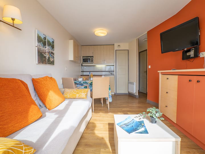 „Le Village (C4 008)“, 2-ოთახიანი ბინა 28 მ2, პირველ სართულზე. Მისაღები ოთახი 1 გამოსაწევი საწოლით (2 x 80 სმ, სიგრძე 190 სმ), ტელევიზორით (ბრტყელი ეკრანით). Ტერასაზე გასვლა, პატიოში. 1 ოთახი 1 ფრანგული საწოლით (140 სმ, სიგრძე 190 სმ). Ტერასაზე, პატიოში გასვლა.