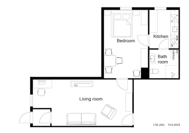 Ოროთახიანი 54კვ/მ ბინა, Wi ‑ Fi, უფასო პარკირების ადგილი, ტერასა