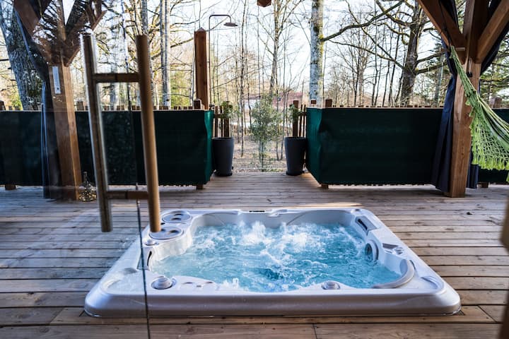 Სახლი ხეზე ჯაკუზითა და საუნით