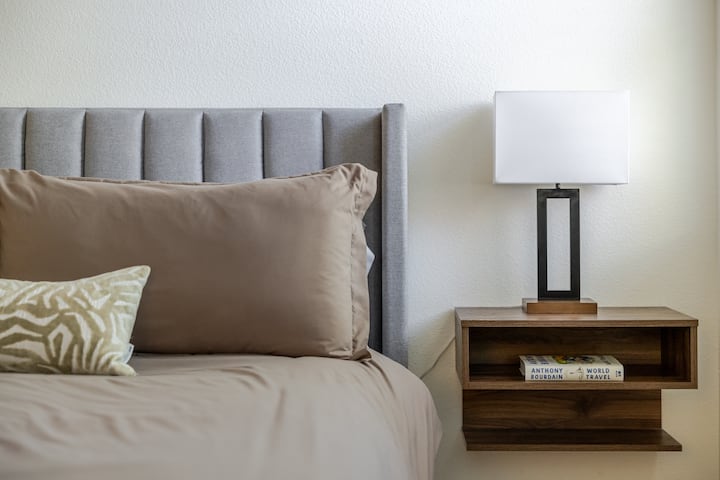 მაღალი კლასის საცხოვრებელი | საწოლი 193×203 სმ | 65‑დუიმიანი ტელევიზორი | სამუშაო მაგიდა