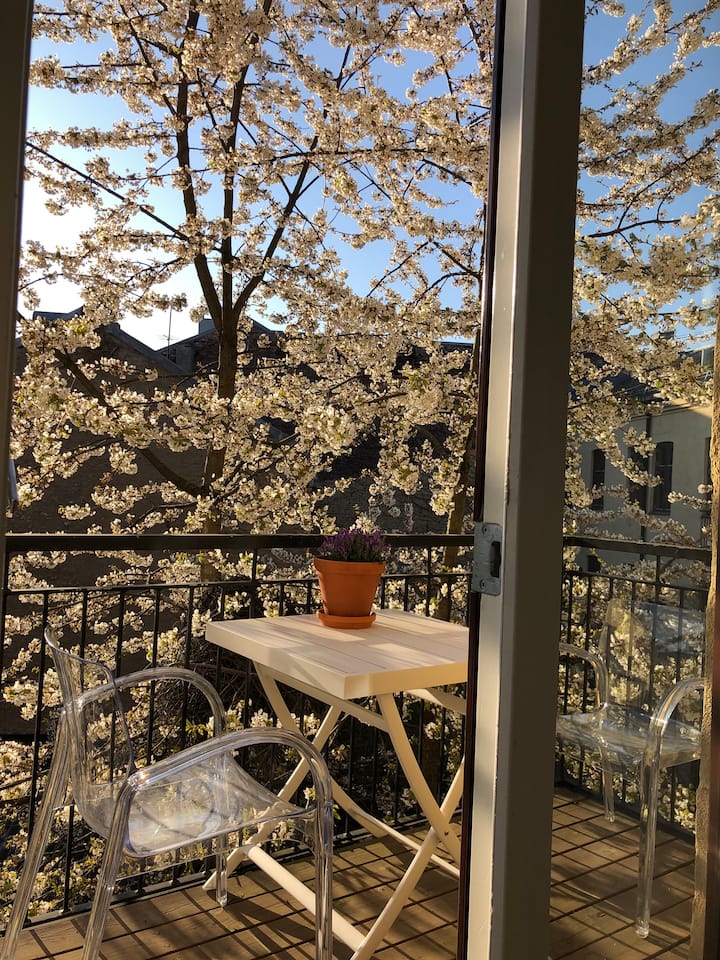Ლამაზი, კლასიკური ბინა აივანზე ხელოვნების უბანში