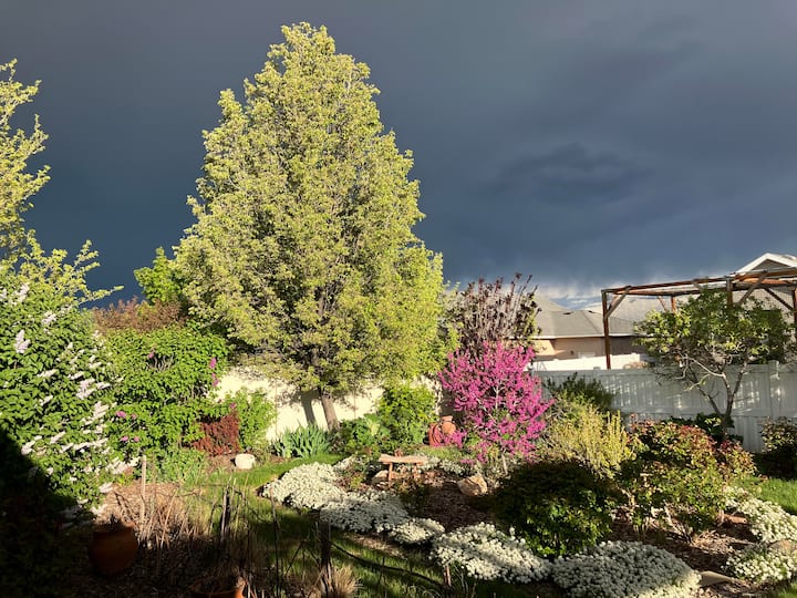 Გულის სიღრმეში ბუნების მოყვარული გოგონა ვარ. Მიყვარს მთები, ლაშქრობა, მებაღეობა, ფოტოგადაღება და გადამუშავება. Აიდაჰოში რანჩოზე გავიზარდე, ამიტომ ნოსტალგიის ბაღში ვმუშაობ. Სიამოვნებით ვკითხულობ, განსაკუთრებით საბავშვო წიგნებს. Განათლების მაგისტრის ხარისხით ძალიან მსიამოვნებს ახალი ადამიანების გაცნობა. Მიყვარს მოგზაურობა და ახალი კულტურების გაცნობა. Ჩემი საყვარელი ადგილია, რა თქმა უნდა, ამერიკული დასავლეთი, შემდეგი - იტალია და შვეიცარიის ალპები. Ვარ ვინტაჟური კოლექციონერი და მხატვარი. Ჩემი ნიჭიერი მეუღლე სტივი ბანკის მენეჯერია და ჩვენი სახლიდან ძრავის შეკეთების მცირე ბიზნესს მართავს, ასე რომ, თუ ხედავთ მანქანების ნაწილებს აქ და იქ, ეს მის გატაცებას აგიხსნით. Ჩვენ მოგვეწონა ჩვენი უნიკალური შთაბეჭდილებები Airbnb-სთან ერთად მთელ მსოფლიოში და გვსურდა, გავმხდარიყავით ამ შესანიშნავი გაერთიანების ნაწილი!
