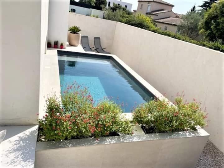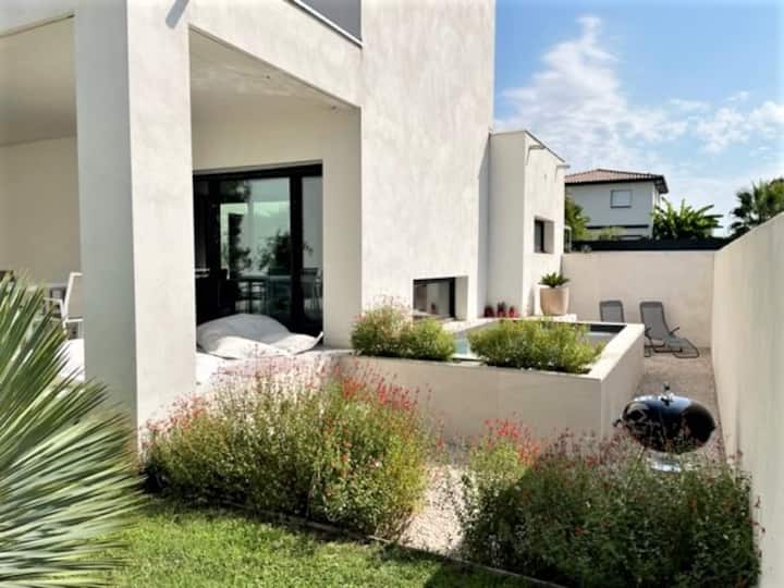Თანამედროვე ვილა 15 სმ პლაჟებიდან საცურაო აუზით