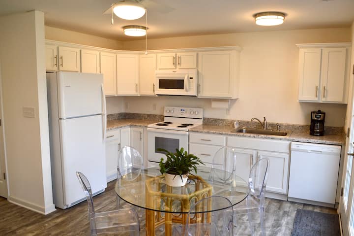 მე და ჩემს ქმარს, ჯიმს, ყოველთვის გვქონდა იმედი, რომ ერთ დღესაც წყალზე ვიცხოვრებდით და მზის ჩასვლის ხედით ვიხალისებდით. 2021 წლის ზაფხულში ძალიან გაგვიხარდა, რომ ჩესდინის ტბის სამხრეთ მხარეს, დინვიდის ოლქში, ახალი სახლი ვიპოვეთ. ის ჩვენს ყველა კრიტერიუმს აკმაყოფილებდა და არც ამით შემოიფარგლებოდა! ერთი რამ, რასაც არ ველოდით, იყო ახლადგარემონტებული, სრულად მოწყობილი 2‑საძინებლიანი საოჯახო სასტუმრო, სრულად აღჭურვილი სამზარეულოთი და ტექნიკით. ჰმ, რა მშვენიერი Airbnb საცხოვრებელი იქნებოდა ეს…