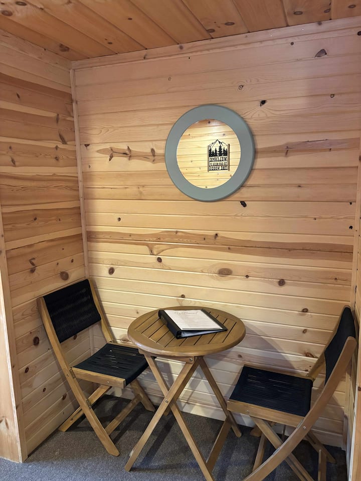 აქვს ცალკე ოთახი თავს ზემოთ ჩვენი სათამაშო ოთახი და lounge deck და მოკლე კომპლექტი კიბეებზე დაშორებით საერთო აბაზანა ორი საკეტი საშხაპე ოთახი და ერთი საკეტი ტუალეტის ოთახი! Გაითვალისწინეთ, რომ ეს ოთახები ხელმისაწვდომია მხოლოდ Pine Creek Villas სტუმრებისთვის და დაცულია ძირითადი კოდის უსაფრთხოებით. Ინდივიდუალური საშხაპე ოთახები და ტუალეტის ოთახი მხოლოდ შიგნიდან არის განბლოკილი თქვენი უსაფრთხოებისთვის!