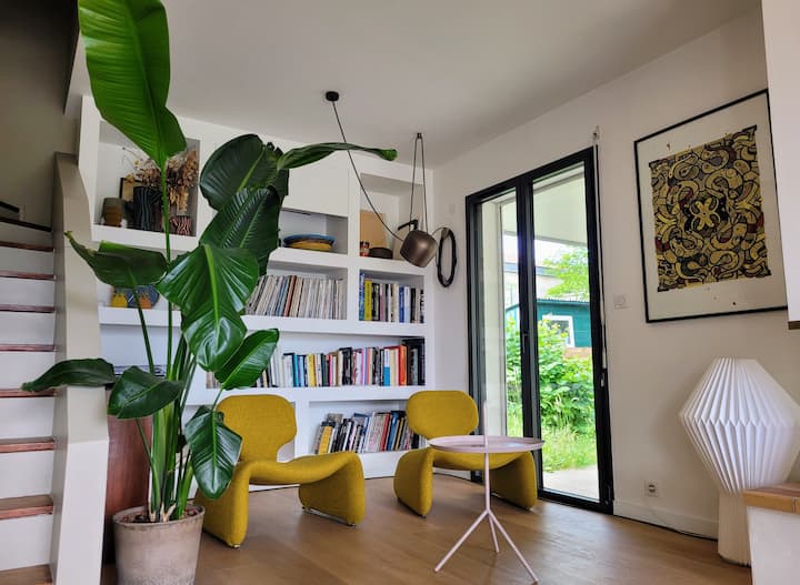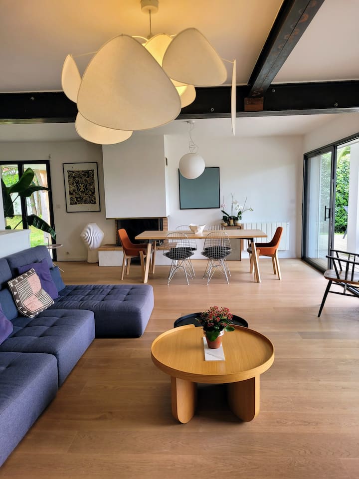 Ჩვენ ხუთსულიანი ოჯახი ვართ ანგლეტში, საფრანგეთის სამხრეთ-დასავლეთით. Ჩემი პარტნიორი ფრანგია, მე კი - Québécoise. Ჩვენ გვიყვარს ჩვენი 3 გიჟი ბავშვი და მათთან ერთად ვატარებთ უამრავ აქტივობას, როგორიცაა ლაშქრობა, სერფინგი, მოგზაურობა, მაგრამ, ძირითადად, გარე სამყარო. Ჩვენ ორივე ვმუშაობთ სახლიდან ციფრულ სექტორში, ჩემი პარტნიორი ინკლუზიური კომპანიაში, რომელიც ეხმარება ყრუ და სმენადაქვეითებულ ადამიანს, ასევე, მე მედიაში. Სანაპიროს დიდი გულშემატკივარი ვართ და ბასკების ქვეყანა მსოფლიოში ერთ-ერთი ულამაზესი ადგილი ვიპოვეთ. Ხელოვნება და დიზაინი ჩვენი ცხოვრების ნაწილიცაა. Ჩვენი სახლი ასახავს ჩვენს ცხოვრების წესსა და გატაცებებს.