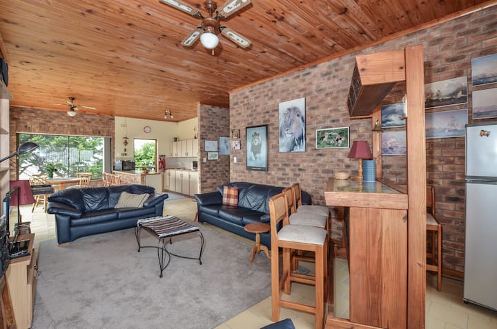 Ფართო სამზარეულო აღჭურვილია თვითმომსახურებისთვის 2 თეფშიანი ღუმელით, 2 მაცივრის საყინულით, კონვექციური მიკროტალღური ღუმელით, დანა-ჩანგლითა და საკარმიდამო ნაკეთობებით. Სასადილო სივრცეში 6 სტუმარია, ტელევიზორის ოთახში კი არის კომფორტული დივანი და ბრტყელეკრანიანი ტელევიზორი DStv ‑ ით. Აქ არის შიდა ბრაი ბარით, ასევე შესანიშნავი მყუდრო სივრცე, რომელიც ნაწილობრივ დაფარულია ბრაიით და ზღვის ხედით.