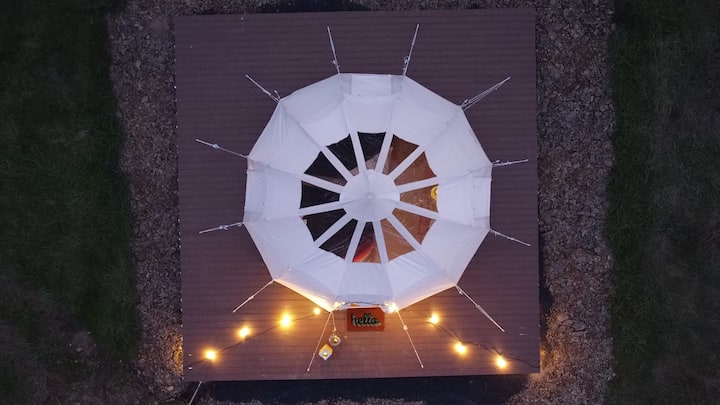 Ლუქს-კლასის გლემპინგ იურტა მდინარეზე, მთის მწვერვალზე
