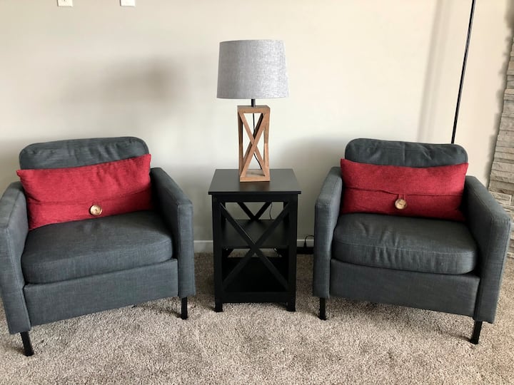 - დასასვენებლად დასაქირავებელი საცხოვრებლები გარე დასაჯდომი ადგილებით: Platte River