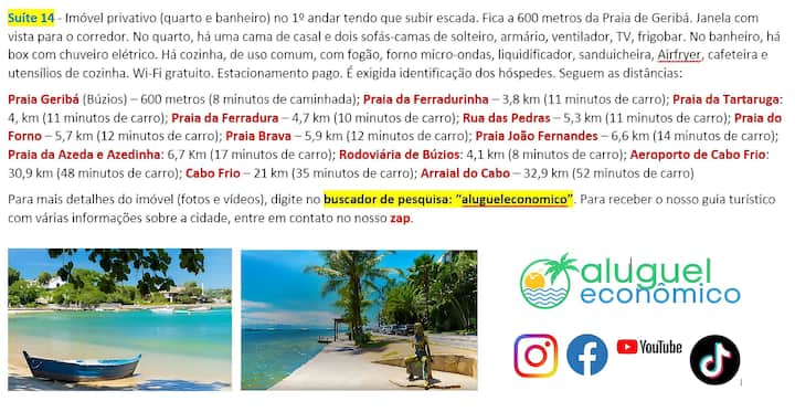 Búzios – Geribá - Suite 14 – Rental Economico