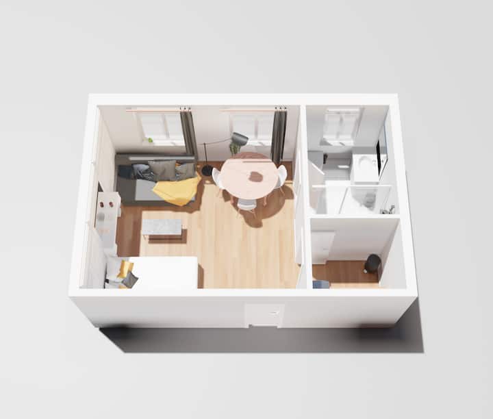 Აპარტამენტები მოიცავს დიდ საცხოვრებელ სივრცეებს ქალაქის ცენტრში.