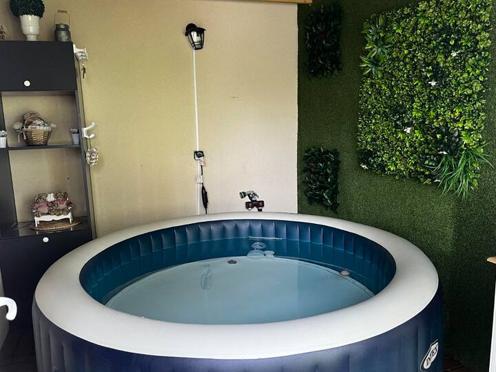 მყუდრო სახლი, 2 საძინებელი, პარკირების ადგილი და ჯაკუზი.