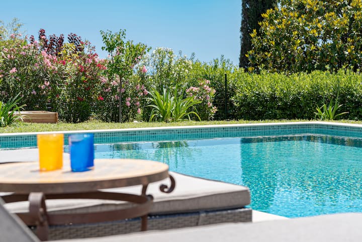 4 ვარსკვლავიანი სახლი, აუზი, კონდიციონერი, ბაღი, ზღვის ხედი