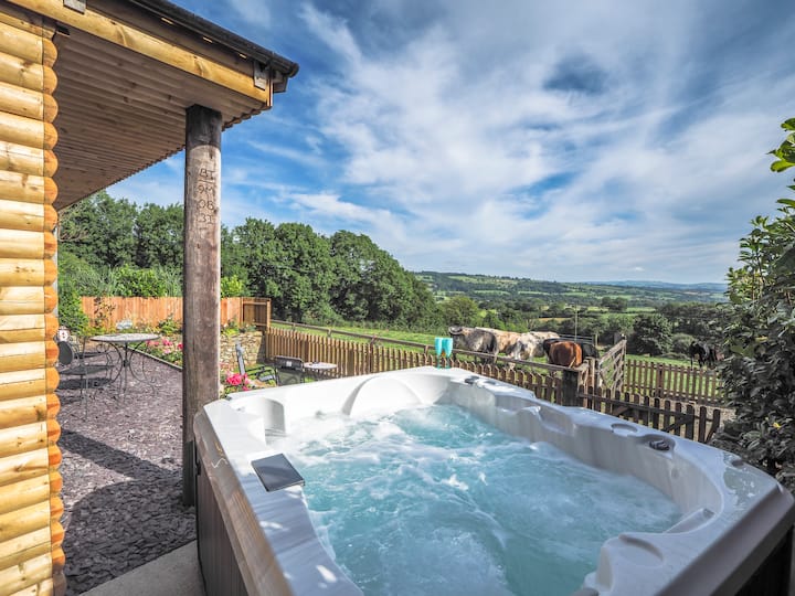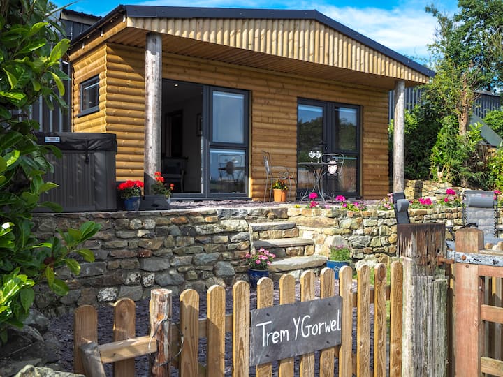 Trem Y Gorwel -სტუნინგის ხის სახლი ჯაკუზით ჰიდრომასაჟიანი აუზით