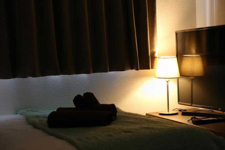28,30 კვ.მ‑ზე მდებარე ამ სტილური კონდომინიუმის ტიპის საცხოვრებელში, რომელსაც აივანი აქვს, მაქსიმუმ 3 ადამიანი იტევა. ოთახში არის კომფორტული გასაშლელი დივანი და მაგიდა, ხოლო თუ საკუთარ ანგარიშს გამოიყენებთ, ტელევიზორში შეძლებთ Netflix‑ისა და YouTube‑ის ყურებას.