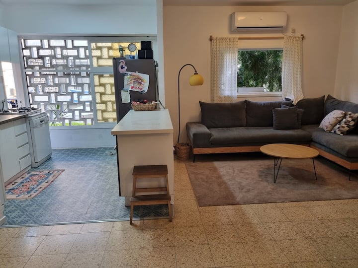 Ლამაზი ფართო ბინა. განათებული და მწვანე