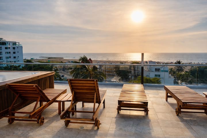 გაიღვიძეთ ზღვის ხედით + ჯაკუზი სახურავზე