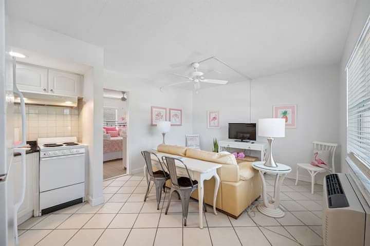 ⛵Ისიამოვნეთ ფლორიდაში საუკეთესოთი! Ეს 1-საწოლიანი, 1-საწოლიანი მე-2 სართულის კონდომინიუმი თანამედროვე სანაპირო დეკორაციებით მხოლოდ ერთ კვარტალშია ყურის შაქრიანი თეთრი პლაჟებიდან, ასევე ბევრი მაღაზიიდან და რესტორნიდან. Ქუჩის გადაღმა, კოლბ-პარკის სათამაშო მოედანი, ჩოგბურთის კორტები, პიკლბოლი, კალათბურთის მოედანი და სკეიტ-პარკი! Შესანიშნავი უბანია ველოსიპედით სეირნობისთვის, სირბილისთვის და სეირნობისთვის. Მნიშვნელობა არ აქვს, თოვლის ფრინველი ხართ თუ ბავშვიანი ოჯახი, ეს იდეალური ადგილია თქვენთვის! 💲✨ Ფასდაკლებები: 5% -იანი ფასდაკლება ერთ კვირაზე ✨ | 10% -იანი ფასდაკლება ერთ თვეზე 💥💲