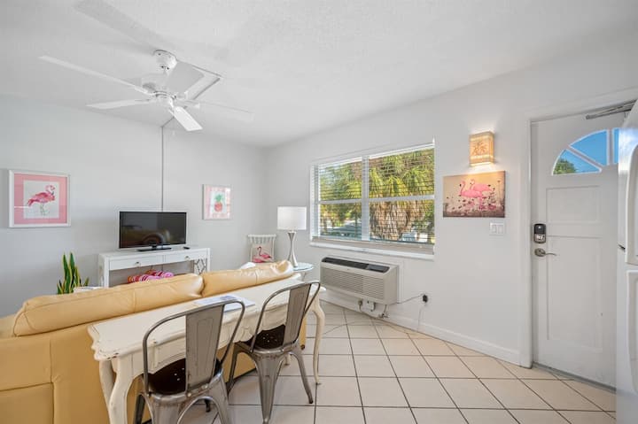 ⛵Ისიამოვნეთ ფლორიდაში საუკეთესოთი! Ეს 1-საწოლიანი, 1-საწოლიანი მე-2 სართულის კონდომინიუმი თანამედროვე სანაპირო დეკორაციებით ამერიკის ყურის შაქრიანი თეთრი პლაჟებიდან, ასევე, მრავალი მაღაზიიდან და რესტორნიდან მოშორებით მდებარეობს. ქუჩის მოპირდაპირე მხარესაა კოლბ‑პარკი, სადაც ბავშვთა სათამაშო მოედანი, ჩოგბურთის კორტები, პიკლბოლის მოედანი, კალათბურთის მოედანი და სკეიტპარკი დაგხვდებათ! Შესანიშნავი უბანია ველოსიპედით სეირნობისთვის, სირბილისთვის და სეირნობისთვის. Მნიშვნელობა არ აქვს, თოვლის ფრინველი ხართ თუ ბავშვიანი ოჯახი, ეს იდეალური ადგილია თქვენთვის! Გაისეირნეთ ქალაქში ან დაისვენეთ ამ თანამედროვე სანაპირო სახლში! Უფასო Wi-Fi, საკაბელო და ბრტყელეკრანიანი ტელევიზორი. Დატკბით ინდური როკ ‑ ბიჩით ან გაემართეთ ქლიუოტერის/წმინდა პიტის ხმაურისკენ და დატკბით ღამის ცხოვრებით!
