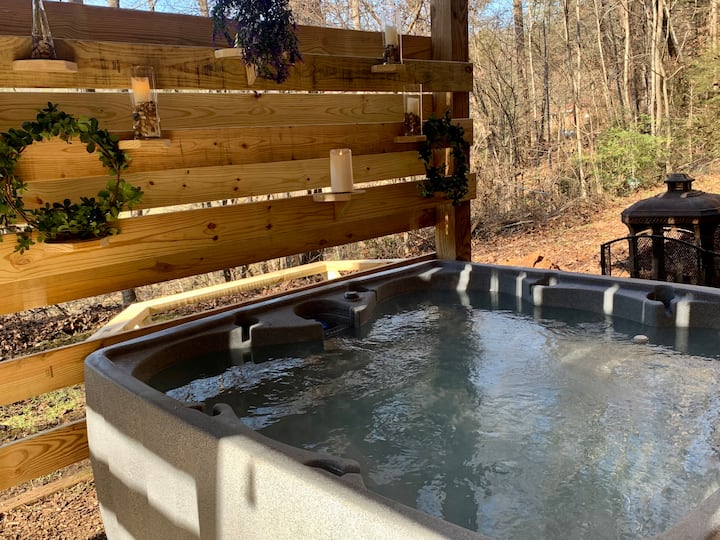 წინა კიბეების ქვემოთა და ტერასის ქვეშ არის ჰიდრომასაჟის აუზი. ეს საცხოვრებელი ზრდასრულებისთვისაა. სტუმრებს ვურჩევთ, ჩამოიტანონ ერთ‑ერთი Bluetooth‑დინამიკი და მუსიკის თანხლებით ისიამოვნონ თბილი წყლით. Ძირითადი საძინებლის კარადაში არის ორი მძიმე წონის სამოსი, დიდი პირსახოცები და ლურჯი კბილის დინამიკი ძირითად საძინებელში მდებარე სპა ‑ ნაკრებში. აუცილებლად გაათბეთ პირსახოცის გამათბობელი, რომ მშვიდად დაისვენოთ! ამ სივრცეს ემატება ადირონდაკის სტილის ორი სკამი და მაგიდა. თუ გსურთ, შეგიძლიათ ჩიმენეაში ცეცხლი დაანთოთ.