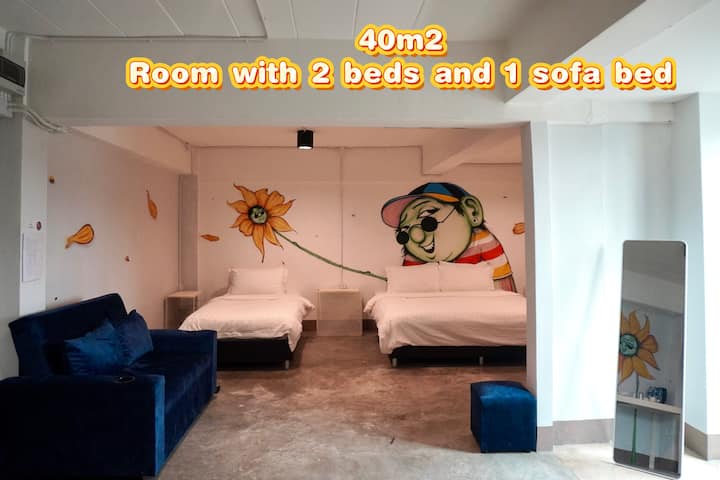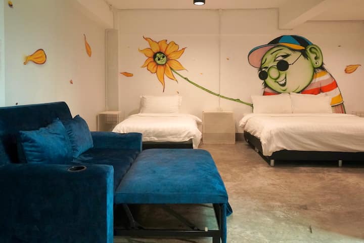 1 დიდი საწოლი + 1 ერთადგილიანი საწოლი + გასაშლელი დივანი 40 ‑ ოთახი - ტაილანდური ხელოვნების სტილის საცხოვრებელი ტა ‑ ფა ‑ კარიბჭესთან, ჩიანგმაის შუაგულში