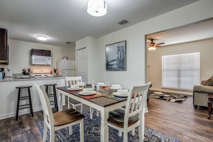 Თქვენ იმყოფებით მშვიდ ქვედანაყოფში, სან-ანტონიოს ყველა ვარიანტთან ახლოს - სულ რაღაც 5 წუთი Lackland AFB-მდე BMT-ის გამოსაშვები საღამოებისთვის. Წინა სტუმრები აღფრთოვანებული არიან იმით, თუ რამდენად იდეალურია მთელი ოჯახის ერთ ჭერქვეშ შეკრებისთვის.