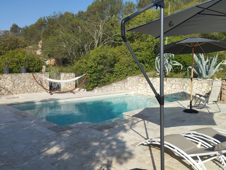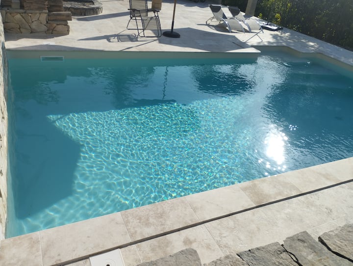Ლამაზი სტუდიო დიდ სახლში აუზით.