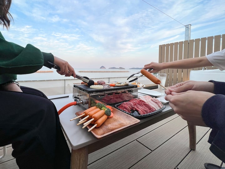 Ბარბექიუコンロ、露天ジャグジー付き1棟貸し海辺の絶景ヴィラ。Პლაჟის სპა ცუდა 2Dos棟