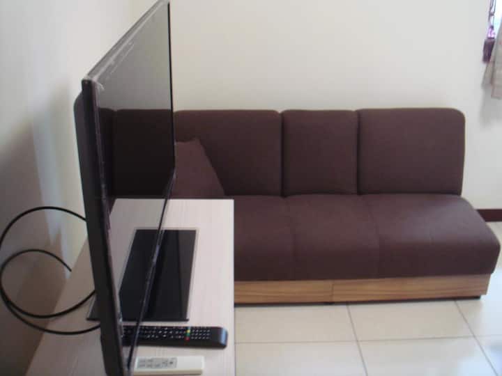 Ელეგანტური ორადგილიანი ოთახი, ახალი 42-დუიმიანი LED-ტელევიზორი პირადი კონდიციონერით, კომფორტული და მყუდრო.