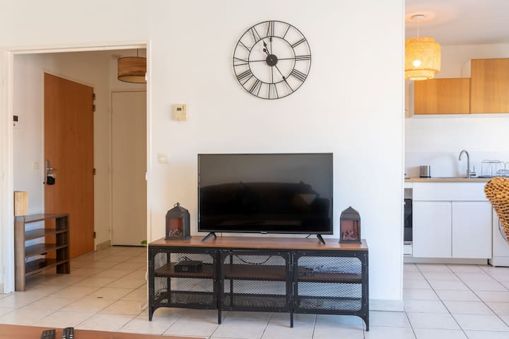 მაღალი გარჩევადობის 42‑დუიმიანი ტელეეკრანი და სტანდარტული საკაბელო