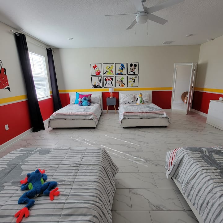 Ეს ფართო დასასვენებელი სახლი ორლანდოში, დისნეის პარკებიდან სულ რაღაც 8 კილომეტრით არის დაშორებული. Პირადი აუზი/სპა. სათამაშო საჰაერო ჰოკეი და მაგიდის ჩოგბურთი თქვენს ბავშვებთან ერთად, აუზის მაგიდა , 110 დიუმიანი ეკრანი პროექტორით აუზის ტერიტორიაზე. Ჩვენს სტუმრებს საშუალება ექნებათ წვდომა ულტრათანამედროვე ოაზისის კლუბში! Ამ ექსკლუზიურ კლუბში არის საკურორტო ტიპის საცურაო აუზი ზარმაცი მდინარისა და მისალმების პარკით, სრულად აღჭურვილი ფიტნეს ცენტრით, ტიკის ბარით, თეატრის ოთახით, რესტორნით და ბარით და მრავალი სხვა!